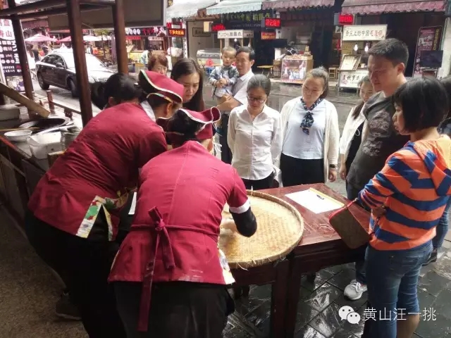 为实现看得见的乡愁,感受舌尖上的乡愁,黄山汪一挑公众号在2016年4月16日发布了“徽州的味道——苎叶粿/汪一挑老街旗舰店室外限时现场制作现场惠民”一文,文中图文并茂地详细介绍了苎叶粿的制作过程。经过近20天的精心准备,5月5日下午三点,汪一挑老街旗舰店室外限时现场制作苎叶粿现场惠民活动拉开帷幕。