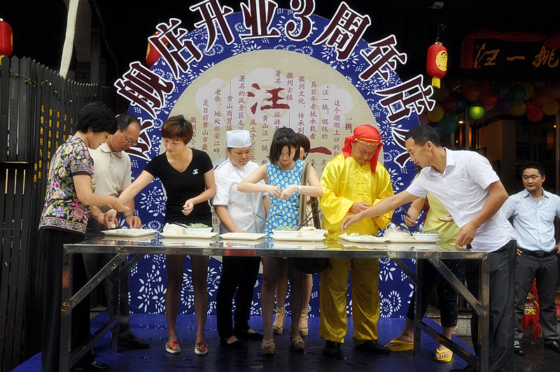 首先由我们一挑公司产品研发部唐经理向参赛者示范包袱饺的正确包法: