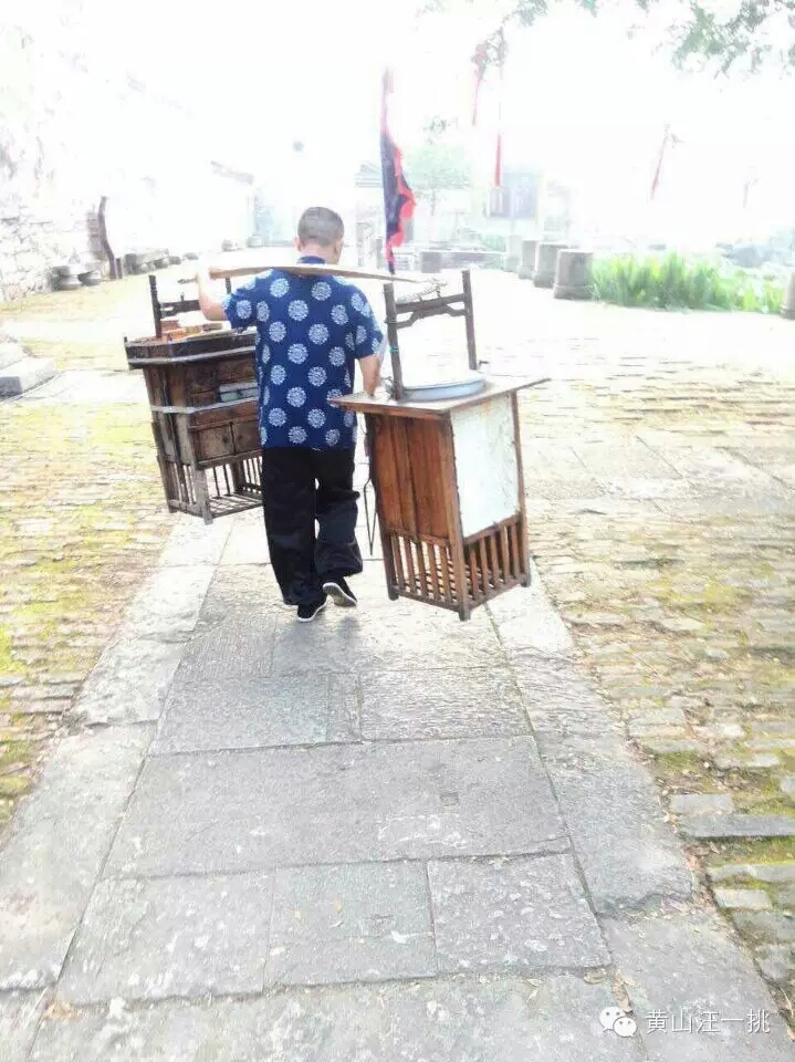 时光荏苒,2010年4月,中央电视台科教频道大型电视系列片《中国十大历史文化名街》开机仪式在屯溪老街举行。当摄制组看到放在“汪一挑馄饨店”门口已成为摆设的馄饨担时,扼腕叹息道:“徽州的最后一个行商”。“汪一挑”是不是徽州的最后一个行商,表达的准确与否并不重要,对“汪一挑”作为行商在屯溪老街消失的惋惜之情已真情诠释。